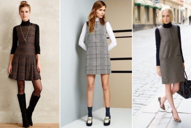 Сарафани з широкими бретелями й сукні без рукавів у поєднанні з водолазками створюють ефектні луки у діловому стилі. Правил тут кілька: