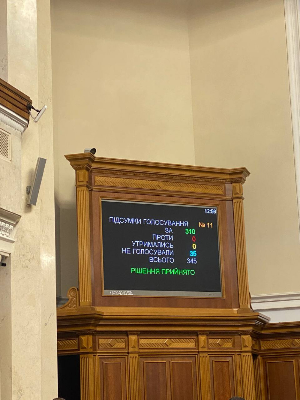 "Верховна Рада продовжила строк дії воєнного стану та загальної мобілізації на 90 днів до 19 лютого 2023 року. Це вже п’яте голосування Парламенту за воєнний стан з початку війни: 24 лютого, 15 березня, 21 квітня, 15 серпня і сьогодні. Цього разу питання ніхто не доповідав (зазвичай це робив Голова РНБО Олексій Данілов)",- написав нардеп.
