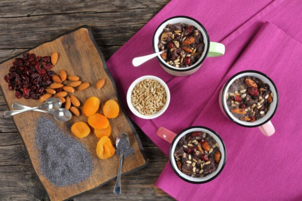 3. У блендері змішати та перебити до однорідної маси крупу разом із сухофруктами. Додати трішки меленої гвоздики та бодяну. Також, за бажанням, можна додати алкоголь. Наприклад, ром. Усе разом ретельно перемішати.