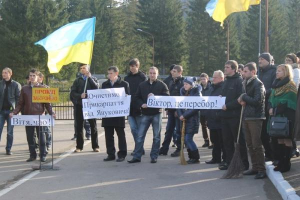 Вчора, на під'їзді до президенської резиденції "Синьогора" у Гуті, прикарпатці провели "екологічну" акцію "Очистимо Прикарпаття від Януковича".