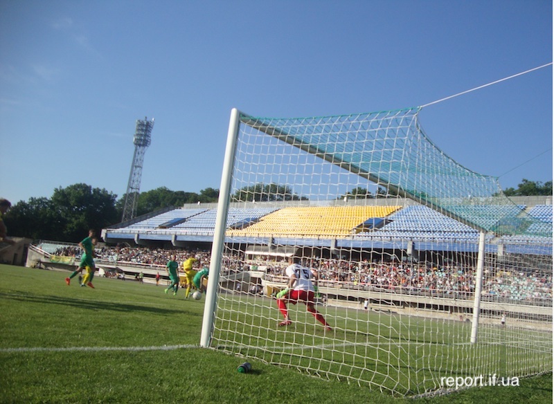 Міг відзначитись кращий бомбардир команди Ігор Худобяк, але його удар парирував воротар гостей. Здавалось, що в першому таймі глядачі не побачать забитих м‘ячів, Але вже у компенсований час, арбітр призначив дуже сумнівний штрафний удар в сторону воріт Остапа Вульчина. І удар Олексія Лобова досяг своє мети. При ударі, стінка іванофранківців розійшлась і м’яч повз воротаря господарів опинився у воротах.