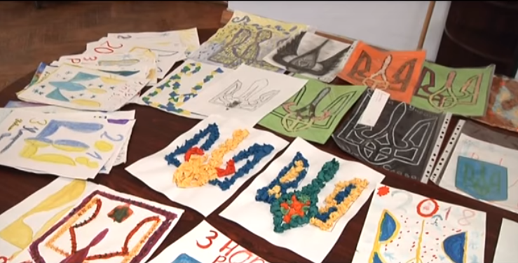 Юні прикарпатці малюють для добровольців тризуби підтримки