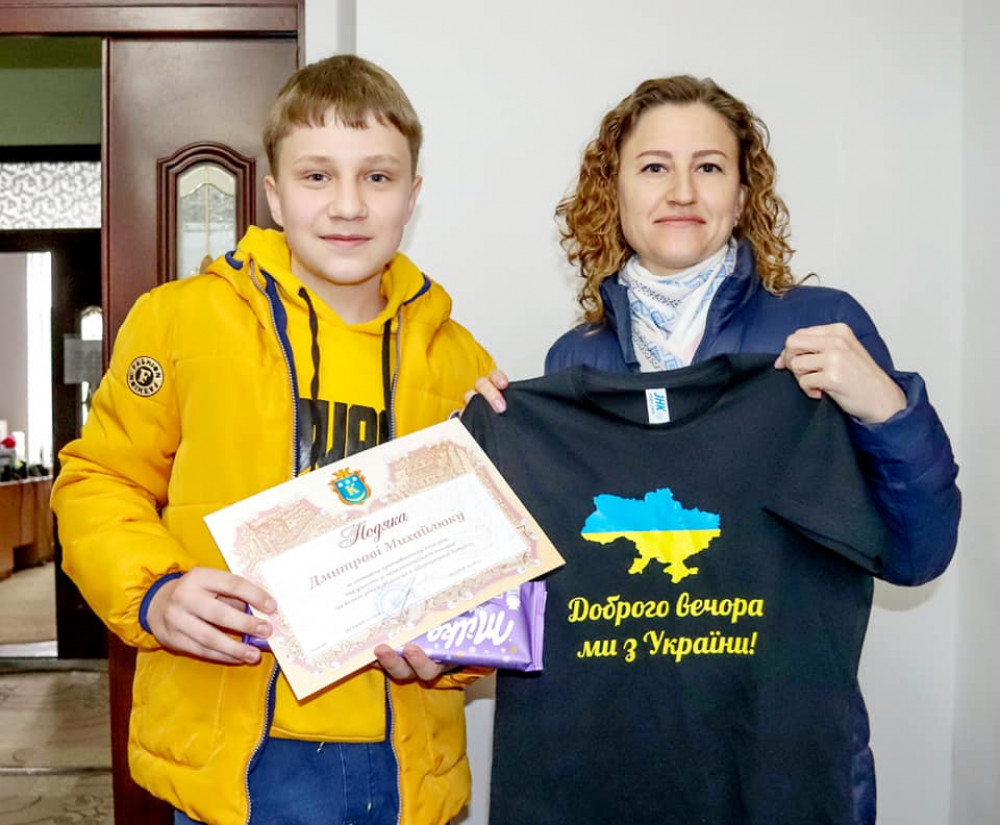 "Якщо зустрінете на вулицях нашого міста білявого хлопчика у футболці з трендовим надписом «Доброго вечора, ми з України» - знайте: це Дмитро МИХАЙЛЮК – юний активіст з Хотіня, учень 6 класу Калуської гімназії № 9, який став добровольцем у загальноміській толоці, що проводилася на берегах нашої річки Лімниці. Тут слід підкреслити, що герой цієї дуже позитивної історії - ЄДИНИЙ представник громади, хто відгукнувся на заклик в соціальних мережах доєднатися до великого прибирання територій. Таким вчинком розчулені були комунальники, коли побачили хлопця зі спеціально заготовленими мішками. Він самотужки крок за кроком визбирував сміття і старанно складував у окремому місці",- каже мер.