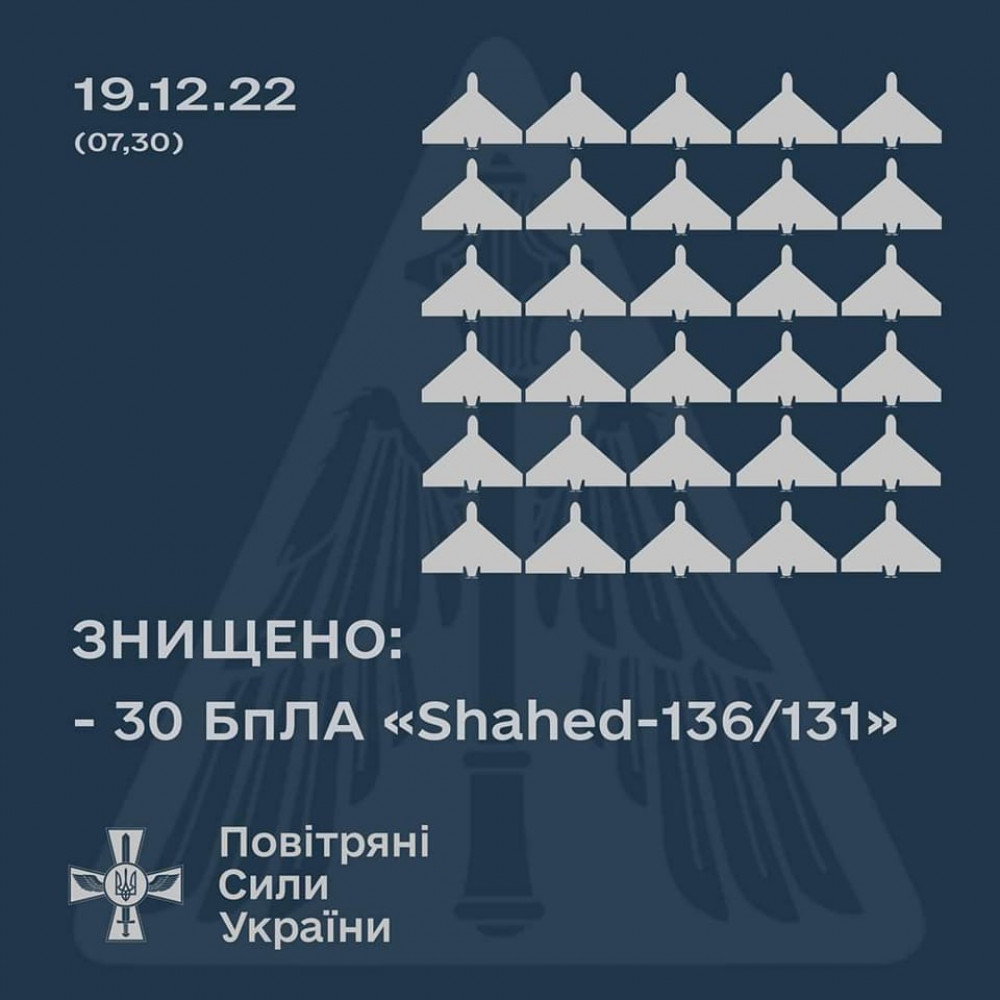 У ніч з 18 на 19 грудня 2022 російські окупанти атакували Україну дронами-камікадзе іранського виробництва «Shahed-136/131».