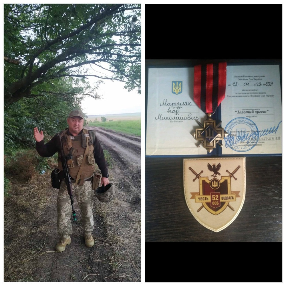 "Серед почесних нагрудних знаків головнокомандувача ЗСУ особливе місце займає відзнака Золотий хрест. Ним нагороджують осіб рядового і сержантського складу за успішне виконання бойових завдань.Саме таку високу нагороду отримав житель нашої громади МАТУЛЯК ІГОР МИКОЛАЙОВИЧ з смт.Рожнятів за бій під Вугледаром. Пишаємося тобою Ігоре і дякуємо тобі за все", - йдеться у дописі.