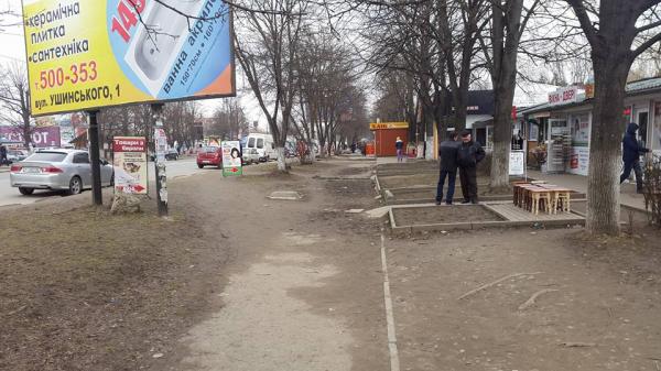 Проте, на днях комунальники розпочали облаштування цієї ділянки тротуару. Про це в мережі Фейсбук повідомив Вадим Войтик.