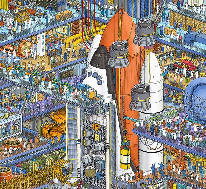 Ілюстрації побудовані на грі. На них зображено безліч людей й серед них можна спробувати знайти жінку.