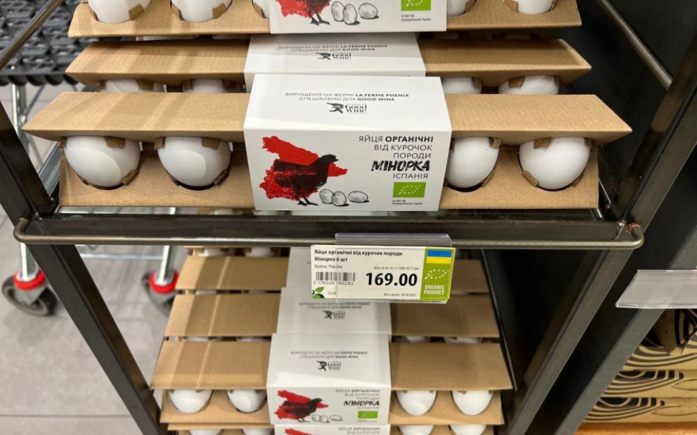 В одному з магазинів Києва на прилавку помітили курячі яйця вартістю 169 гривень за шість штук. Так, десяток коштуватиме 281,60 грн, пише ТСН.