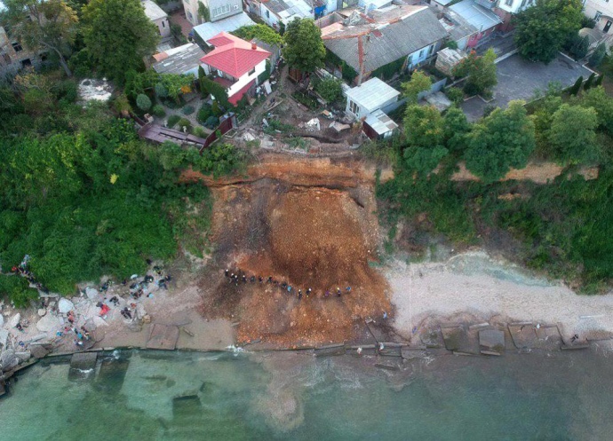 На морському узбережжі поруч з пансіонатом "Борей" в Одесі стався зсув грунту зі схилу, рятувальники ведуть пошукові роботи.