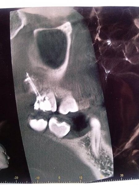 Однак в Іванки закралися сумніви. Вона вирішила звернутися до іншого лікаря, але вже в клініці центру стоматології ІФНМУ. Стоматолог Оксана Волосовська відразу спрямувала дівчину на томографію. Зрештою здогади медика підтвердилися – у кістці та в коронці зуба застряг інструмент для пломбування каналу, який має вигляд спіралеподібної залізної голки завдовжки близько 3 см.