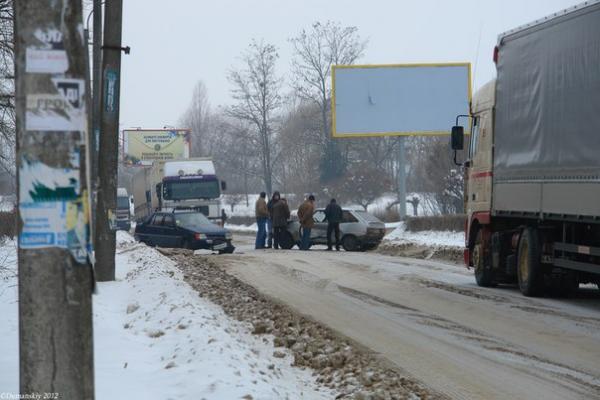 По прибуттю встановлено, що внаслідок ожеледиці два вантажні автомобілі стоять на узбіччі дороги, проїзд здійснюється в односторонньому напрямку, потерпілих немає.