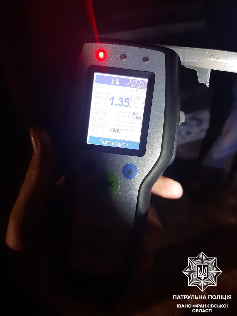 6 водіїв з ознаками сп'яніння виявили патрульні Івано-Франківська за вчорашню зміну, 14 лютого.