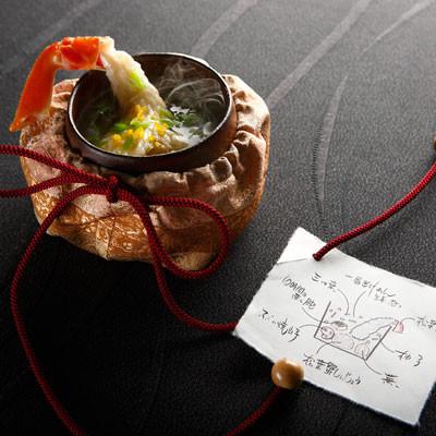 Це печеня зі снігового краба (якого спеціально привозять з району Таджіма), морського вуха, яке 10 годин поспіль готується на парі, і молочка фугу в імбирному даши-бульйоні.