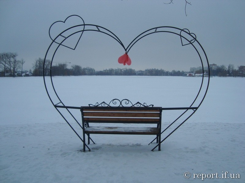 Не секрет, що Франківськ є романтичним, красивим та затишним містом. Прогулюючись ним, можна натрапити на лавочку для закоханих, яка на вулиці Незалежності, біля драмтеатру. В неї закладений зв’язок двох закоханих, який символізує перехрещені між собою два дерева, підсилені міцним окуттям кованого металу.
