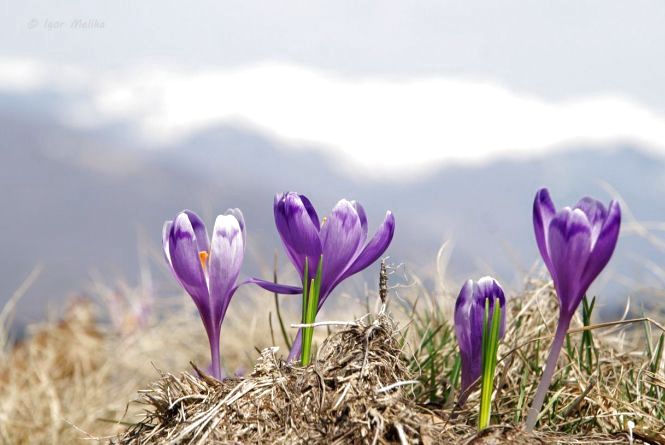 1. Крокуси (шафран Гейфеля) розквітають першими на схилах Українських Карпат. Їхня найбільша плодючість розташована в селі Колочаві Міжгірського району Закарпатської області, недалеко від озера Синевир. Ці квіти відносять до червонокнижних і зривати їх заборонено. Як говорять, ця територія – одна з найголовніших екологічно чистих місць в Україні.