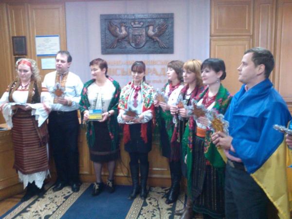 Меру міста та всім присутнім на нараді колядували волонтери громадського об'єднання "Свій до свого", співорганізатором якого є дружина Віктора Анушкевичуса – Лідія, інформує кореспондент «Бліц-Інфо».