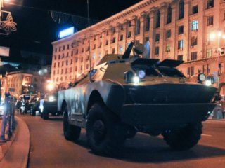 Біля банку "Хрещатик" два БТР-и, кулемет на тринозі, "Беркут" озброюється "калашниковими"