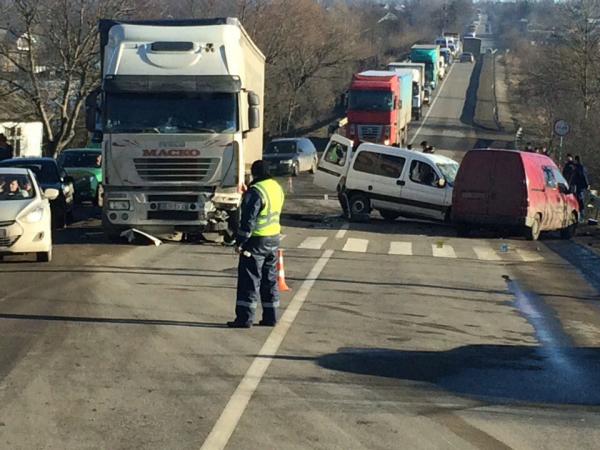 Біля Калуша зіткнулися два мінівени і фура: один загиблий, двоє у лікарні