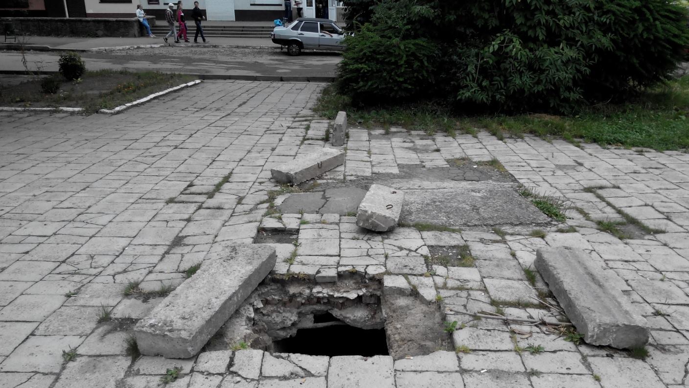 Місце провалля огороджено попереджувальними стрічками та накрито з метою запобігання потрапляння у провалля людей чи тварин.