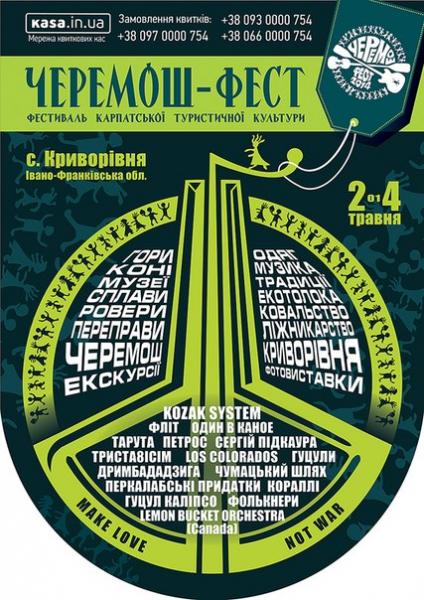 «Черемош-Фест» - еко-туристичний фестиваль у Карпатах. 24-26 липня, урочище Запідок, с. Верхній Ясенів, Верховинський район, Івано-Франківська область.