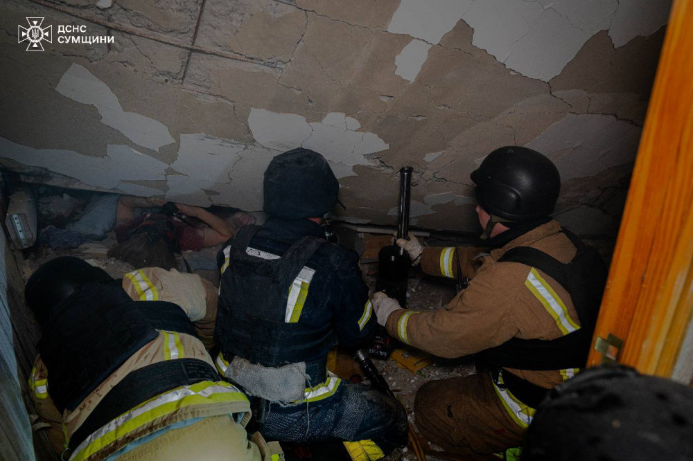 Вночі окупанти вдарили по п'ятиповерхівці у Сумах. Знищено близько півтора десятка квартир, гасіння пожежі триває. Підрозділи ДСНС врятували 10 людей, постраждали щонайменше 8 жителів. Серед зниклих безвісти можуть бути ще троє людей.