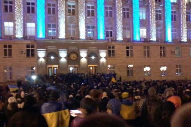 Як розповів Еспресо.TV черкаський журналіст Стас Кухарчук, черкащани - близько 2-2,5 тис. осіб - зібрались сьогодні на мітинг в рамках страйку, до якого закликала опозиція. Згодом люди зробили спробу увійти до приміщеня облдержадміністрації (як це було зроблено сьогодні в ряді західних областій України).