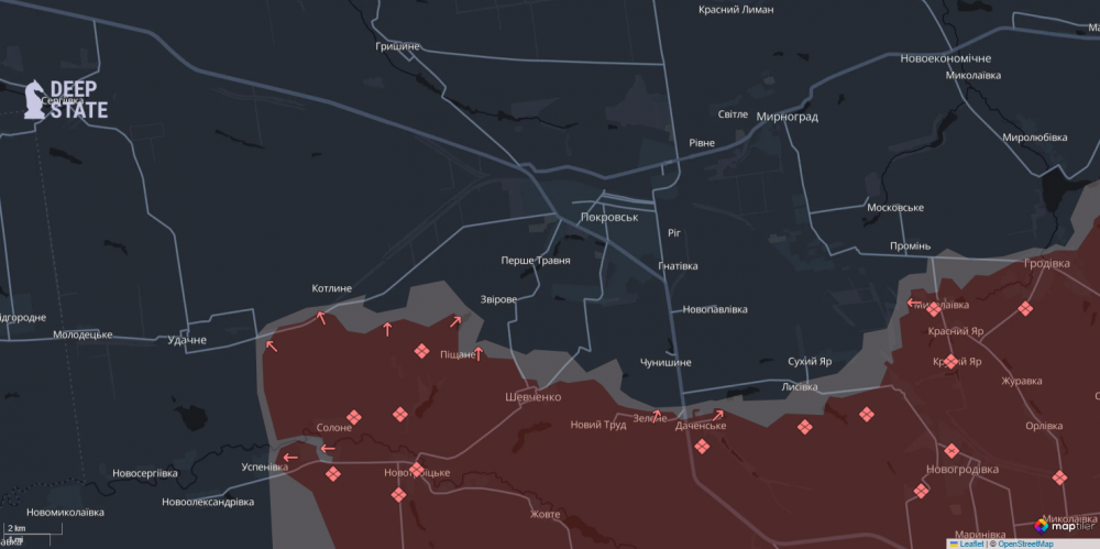 Як повідомляє Генштаб ЗСУ, за останню добу ЗС РФ атакував позиції Сил оборони в районах населених пунктів Баранівка, Зелене Поле, Єлизаветівка, Тарасівка, Нова Полтава, Новоторецьке, Лисівка, Мирноград, Зелене, Новий Труд, Промінь, Покровськ, Шевченко, Удачне, Нововасилівка, Успенівка, Петропавлівка, Новоандріївка, Слов’янка, Срібне, Андріївка, Курахове, Дачне та Янтарне.