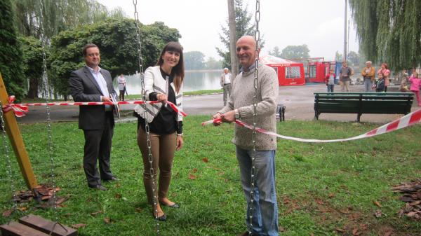 Сьогодні, 20 вересня, на території міського озера поблизу прокату човнів без зайвих урочистостей відкрили нову, цікаву зону для дитячого дозвілля. Екомайданчик, що складається з кількох елементів, є тільки першим етапом грандіозних планах ініціаторів його встановлення.