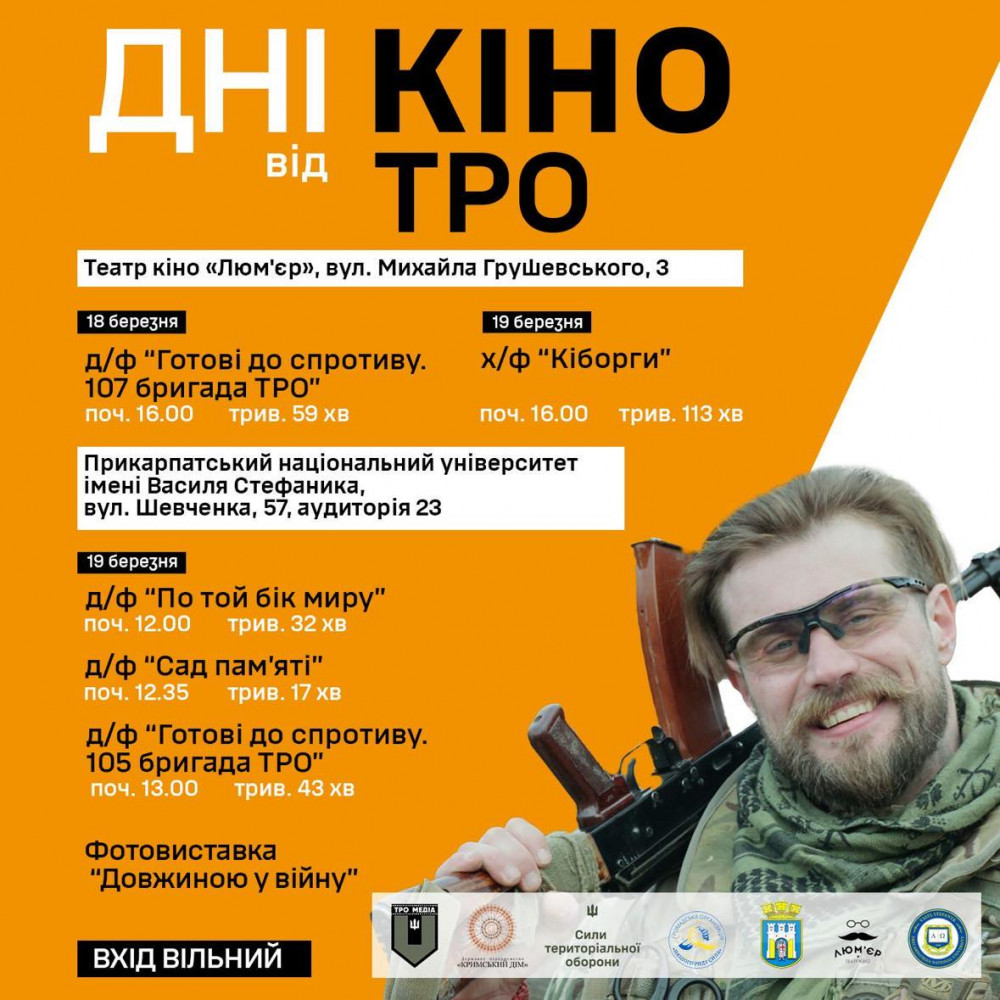 Протягом двох днів, 18 і 19 березня, в Івано-Франківську будуть безкоштовні покази документальних стрічок, а також фотовиставка «Довжиною у війну», створена військовими.