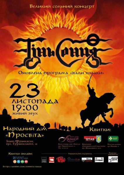 23 листопада, в Івано-Франківську, відбудеться свято справжнього козацького року — з великим сольним концертом завітає «Тінь Сонця»!