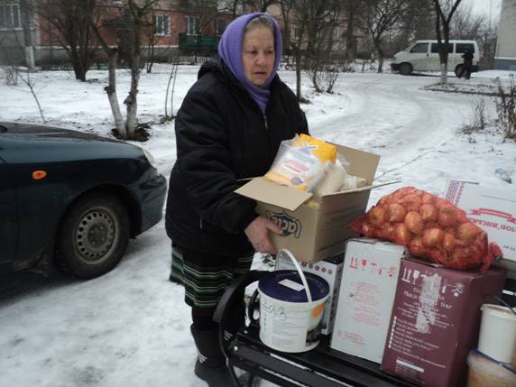 Двадцять п’ять сімей зібрали продукти харчування: м’ясні та овочеві консерви, квашені овочі, борошно, олії та тваринні жири, солодощі, макаронні вироби, овочі зимового зберігання для захисників на Сході.