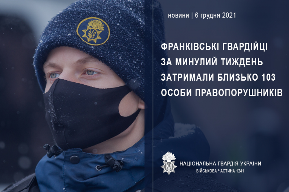 За минулий тиждень гвардійці військової частини 1241, що дислокується в місті Івано-Франківськ спільно з працівниками Національної поліції затримали 19 осіб за адміністративні правопорушення.