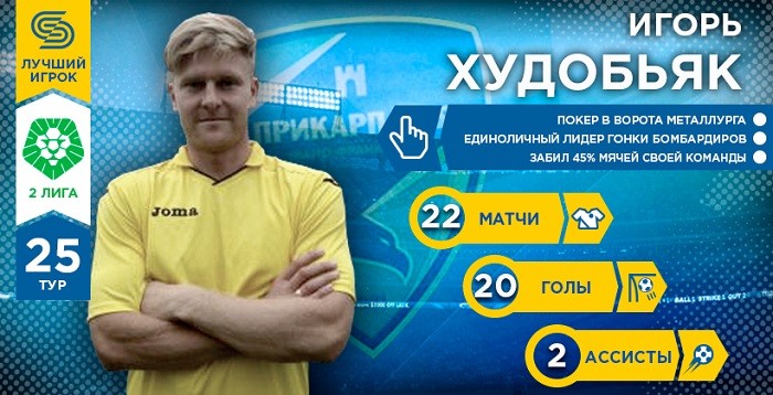 Настільки результативна гра дозволила ПФЛ спільно з інформаційним партнером Sport Arena визнати форварда Героєм 25-го туру в Другій лізі.