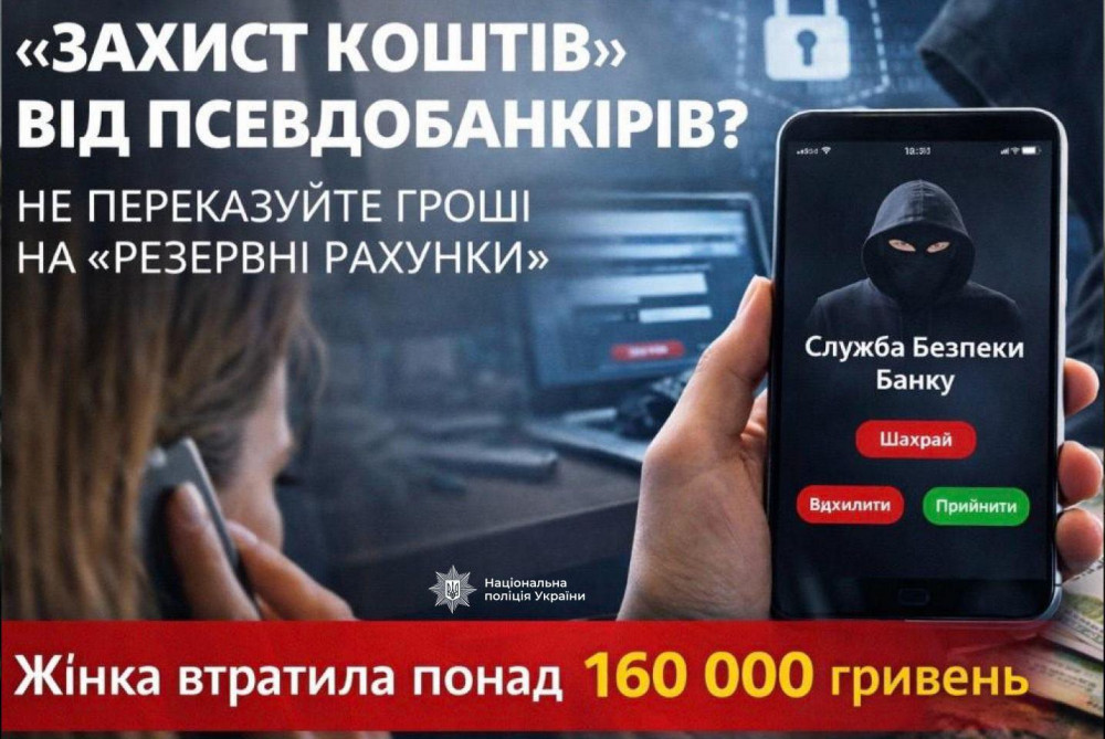 "15 березня до Івано-Франківського районного управління поліції звернулася 39-річна жителька обласного центру із заявою про шахрайські дії. Зі слів потерпілої, до неї зателефонували невідомі особи, які представилися працівниками банку та повідомили про нібито втручання сторонніх осіб у її онлайн-банкінг. Аферисти переконали жінку, що її кошти перебувають під загрозою викрадення, та запропонували «захистити» їх шляхом термінового перерахунку на так звані резервні рахунки. Виконуючи вказівки невідомих, заявниця здійснила кілька фінансових операцій зі своїх банківських карток",- повідомили у поліції.