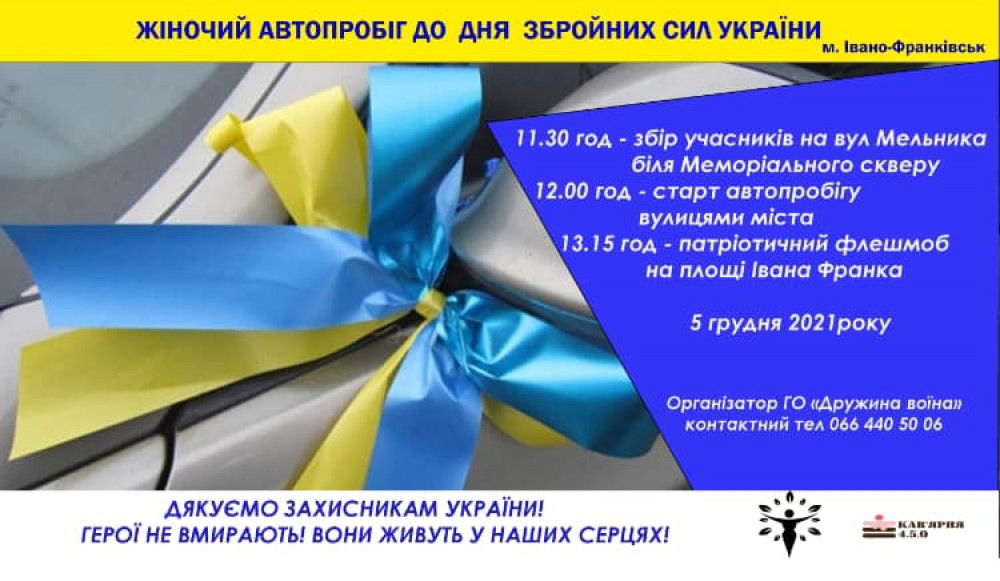 Дружини воїнів запрошують франківчанок приєднатися до жіночого автопробігу та флешмобу на підтримку воїнів. Плануємо його на 5 грудня - до Дня Збройних сил України.
