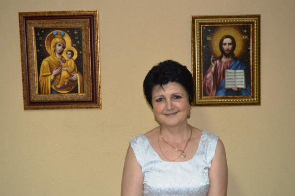 Людина про яку піде сьогодні мова, здавалося б нічим особливим не відрізняється. Оксана Терешкун - кандидат політичних наук, доцент, завідувач кафедри філософії та політології Прикарпатського юридичного інституту. Проте нещодавно вона презентувала свою виставку вишитих і виготовлених у стилі "гобелен" ікон.