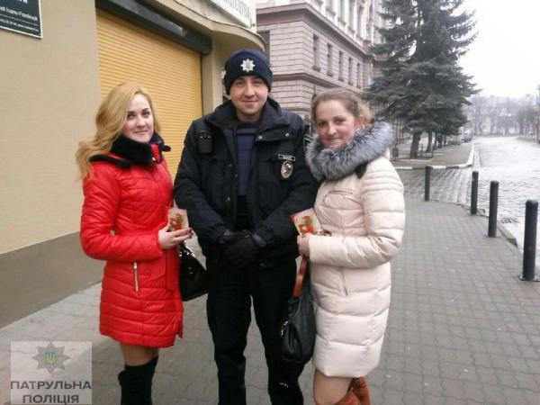 І ось з раннього ранку поліцейські вийшли на вулиці Франківська з вітальними листівками і дарували їх прохожим дівчатам та жінкам.