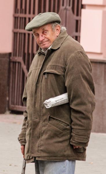 Щодня на одному й тому ж місці, щоразу легендарна фраза: «Пане, дайте пару копійок», а для дівчат: «Пані, файну маєш сраку». Від зірки інтернет-роликів та колажів чимало людей тікають, бо бояться отримати від старого «по сраці» його легендарним коштуром. Чи є у місті більш легендарна особистість, ніж цей жебрак? Попри мегапублічність Пане Дайте Пару Копійок, про нього майже нічого невідомо, бо він нікому про себе не розповідає. Нікому, крім фотографа та блогера Ростислава Шпука, який віддавна робить репортажі про місцевих диваків. Незабаром Пане Дайте Пару Копійок завдяки Шпуку стане героєм журналу для безхатьків «Просто неба», пише Галицький кореспондент