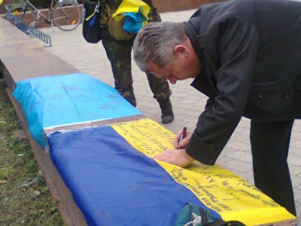 Такі сподівання на наступний рік Віктор Андрюсович написав на українському прапорі, передає кореспондент "Бліц-Інфо".