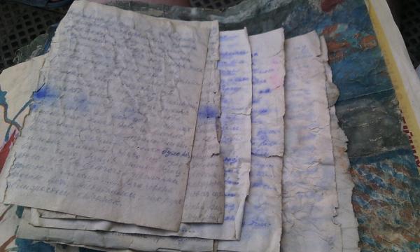 За словами Сергія, все писано на різних аркушах і трохи дивною мовою. Багато не зрозуміло, бо аруші відвологли і чорнило потекло, але буде розбирати та переписувати, бо хочеться знати всю історію.