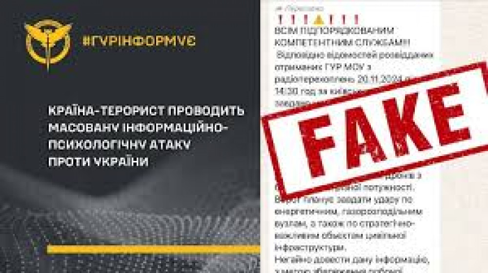 Як наголошують у Головному управлінні розвідки, це повідомлення — фейк, який має типові для російських інформаційно-психологічних операцій граматичні помилки.