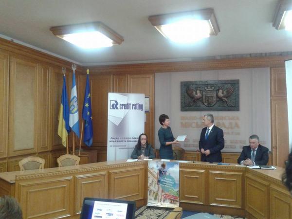 Генеральний директор рейтингового агенства "Кредит-Рейтинг" Марина Проценко вручила відповідний Сертифікат та Інвестиційний паспорт міському голові Івано-Франківська ,інформує кореспондент Бліц-Інфо.