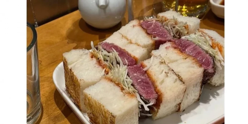 Кацу-сандо в Привіті – це традиційний японський сендвіч з білим хлібом, свіжою капустою, домашнім соусом тонкацу (з яблуками, морквою і цибулею), а також – стейком з японської мармурової яловичини класифікації А5 ваґю. Саме останній інгредієнт і сформував немаленьку вартість страви – в середньому, у Києві 100 грам такого м'яса обійдуться в 700-800 гривень.