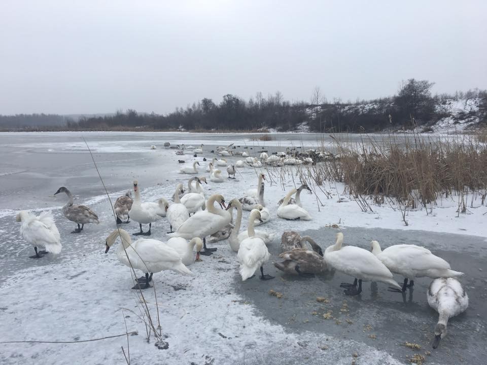 Небайдужі прикарпатці та працівники ДСНС допомогли лебедям, що замерзали на міському озері у Коломиї.