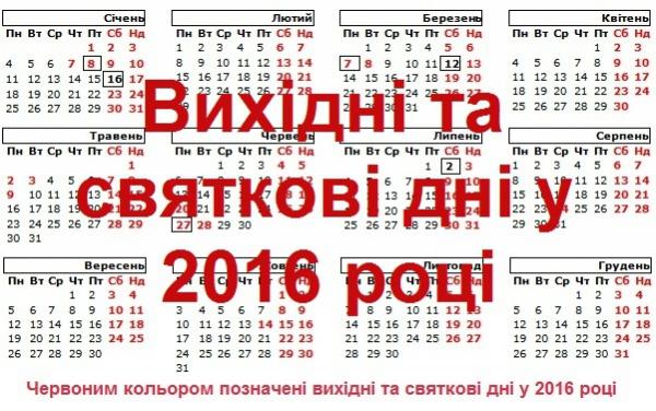 Кабінет Міністрів України оприлюднив повний список вихідних у 2016-му році для працівників із 5-денним робочим тижнем.