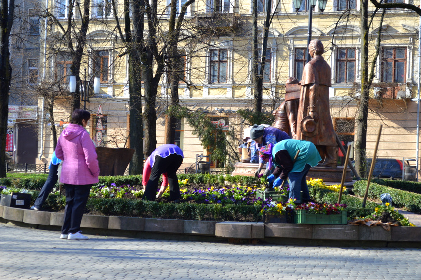 За його словами, з березня у Франківську висадили 33 тисячі кущів віоли на площі 1310 м. та у 100 ваз. Коли віола відцвіте на клумбах висадять інші квіти, що цвістимуть аж до морозів.