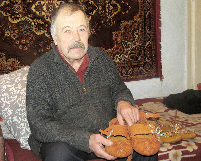 – Зараз, вам скажу, вже є багато. Все залежить від людського добробуту. Як люди жили тісніше (бідніше. – І. Л.), то менше заказували. А сьогодні замовлєют білше, передусім на весілля. Відчуваєсі відродження інтересу до народного вбрання. Ціна пари постолів – 700-800 грн. Бо на неї треба шкіри на 400 грн. А один квадратний метр шкіри коштує 50 доларів. На базар я не ходжу. Люди самі приїхают, або телефонують. Та й робити багато я вже не годен.