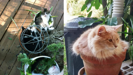 Дивна нелюбов (або ж любов) до вазонів і садівництва у котів інколи перетворюється на кадри з хорорів або драматичних фільмів. Тому не дивно, що господарі фотографують своїх пухнастиків під час взаємодії з рослинами та діляться цими знімками у мережі. Здається, коти – це також рослини, але з лапками і голосом.