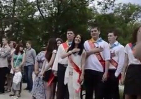 У Ялті (АРК) випускники однієї зі шкіл заспівали гімн України на противагу гімну Росії. На відео чітко помітно, як кілька секунд школярі вагаються, а потім прикладають руки до грудей і починають співати. 5 канал