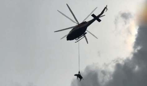 У італійській Сардинії зафіксували як свійська тварина летіла у небі. Щоправда не самостійно, а на гелікоптері.